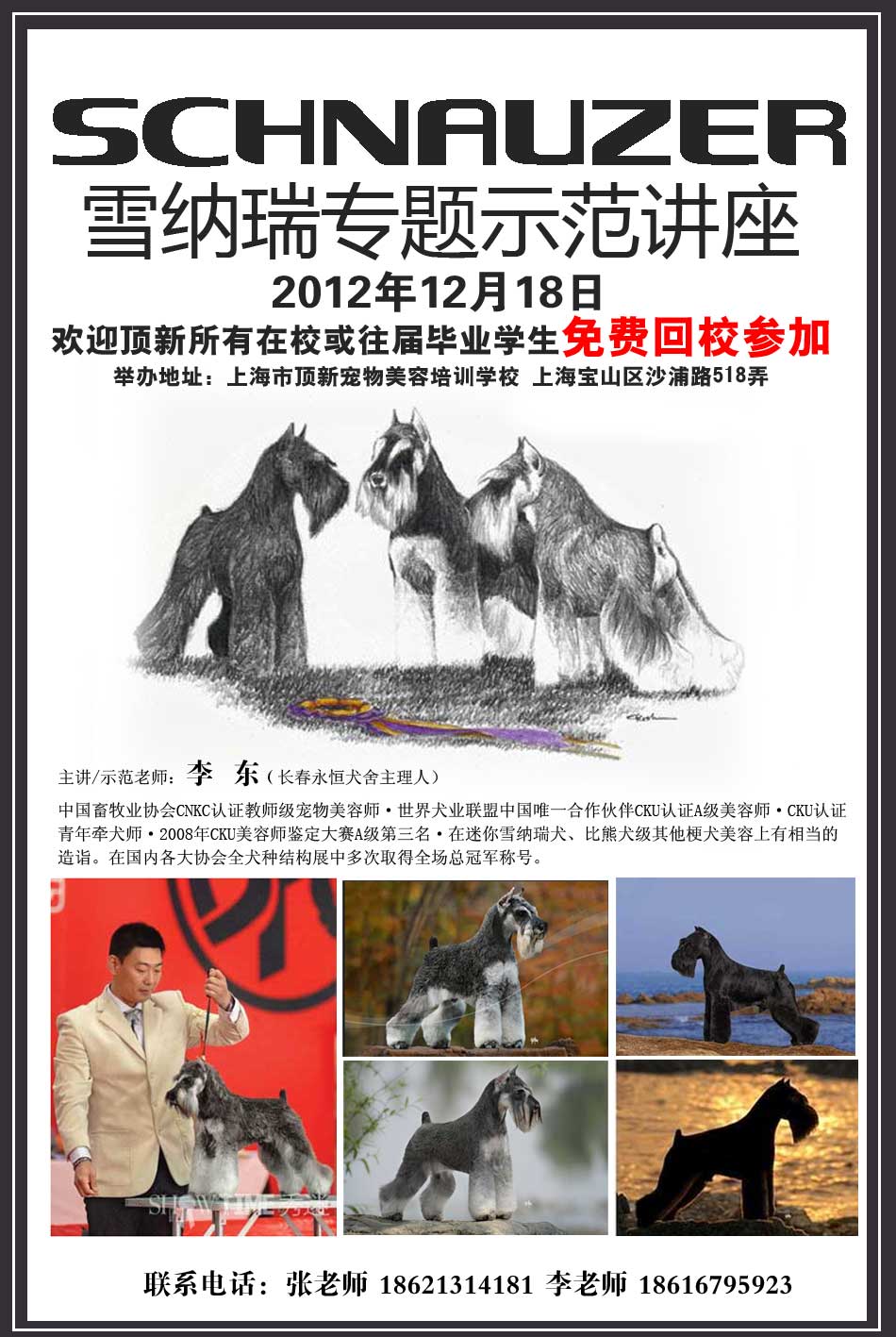 上海市顶新宠物美容学校——2012年年终巨献/雪纳瑞专题示范讲座 主讲:永恒犬舍/主理人/ CKU A级美容师/顶新宠物美容培训中心客座讲师/李东(老师) 2012年12月18日,在上海顶新宠物美容培训中心,如期举办了雪纳瑞专题示范讲座,作为2012年年终的一次重要的美容讲座,我们特别邀请了永恒犬舍/主理人/ CKU A级美容师/顶新宠物美容培训中心客座讲师/李东(老师),为到场的所有顶新应届、历届学员,做了精彩的美容示范以及雪纳瑞犬种标准的详细讲解。让到会的同学们对这一工作中经常接触的品种有了全新的认知和理解。顶新作为一所以宠物美容教学的学校,除了在贵宾犬美容方面的独特优势外,也同样注重其他犬种美容的教学。让所有顶新的学生们能得到最全面、最实用的核心技术。非常感谢李东老师抽出宝贵时间来校执教,感谢所有到场的同学们,正是因为你们的不断支持,我们的顶新才能不断进步。 美容讲座后,张轩老师借此机会,再次针对CKU美容师鉴定考试为同学们做了最新的全面介绍。作为CKU指定宠物美容培训学校,鼓励大家踊跃报名参加CKU3.15日在上海举办的宠物美容师鉴定大赛是我们的责任和义务。 本文来自上海市顶新宠物美容学校——教育中心 |